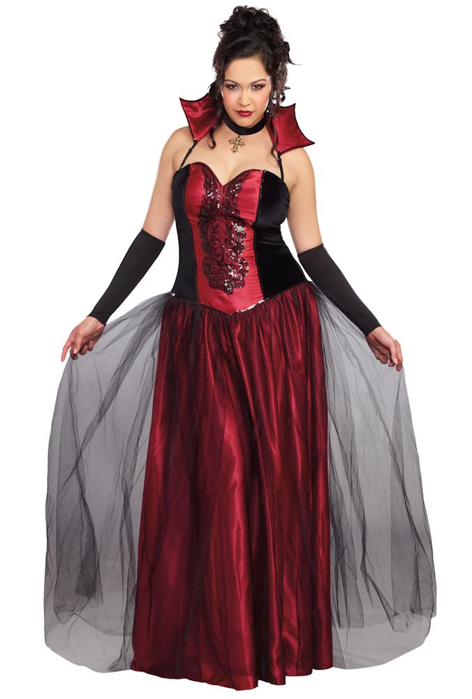 Its love at first bite with Bloody Beautiful vampire! Devour in decadence in this elegant ball down layered with satin and black tulle and a velvet bodice with sequin applique and a removable collar.