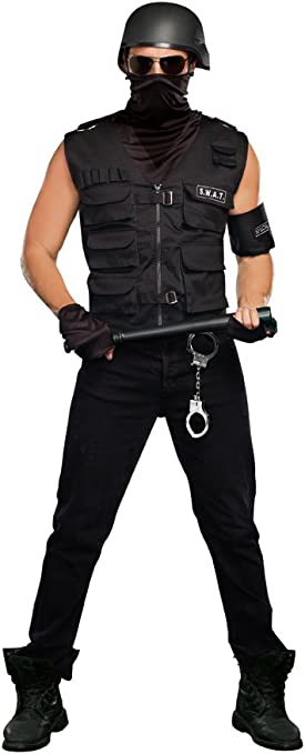 - Black heavy duty vest has bullet holders, utility pockets, SWAT Police back screen print and special Swat patch
