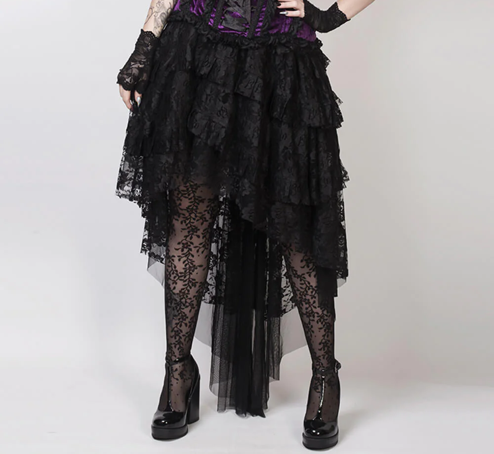 Best for Height : 5'.3" to 5'.10" Dimensions : Center Front – 16" / Back – 43" / Side – 30" Fabrics : Taffeta & Lace with Elasticated Waistband Opening : Elasticated Waist Pattern Name : Kamilla Skirt Type : Layered